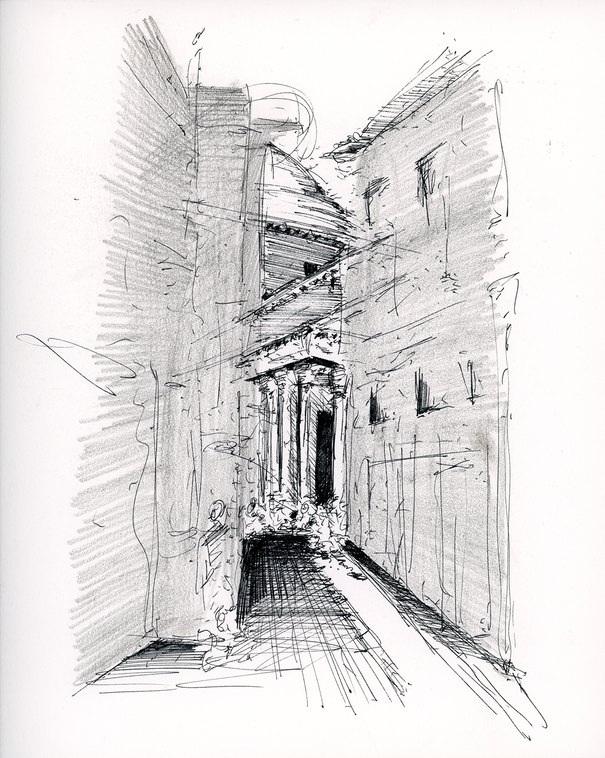 Architectural 'follies' have played an increasingly important role in contemporary architecture. They create an opportunity to comment on architecture by sketching in built form. Follies are not architecture; they are installations with the ability to envelop us in a spatial experience. Roman ruins such as those at Villa Adriana and Ostia Antica have been the main spring of my folly. They suggest in their dynamic state, multiple possibilities for creating contemporary architecture. I am interested in the power of their fragments; bits of buildings, which orient, contain, and suggest a past and future simultaneously. The eye uses these fragments to reconstruct the buildings past while the holes, gaps and scars allude to the ruin's future, the death of it's architecture? At this stage of disappearing, the missing building becomes as important as it's remaining fragments. In Pavilion I have attempted to capture this balance.