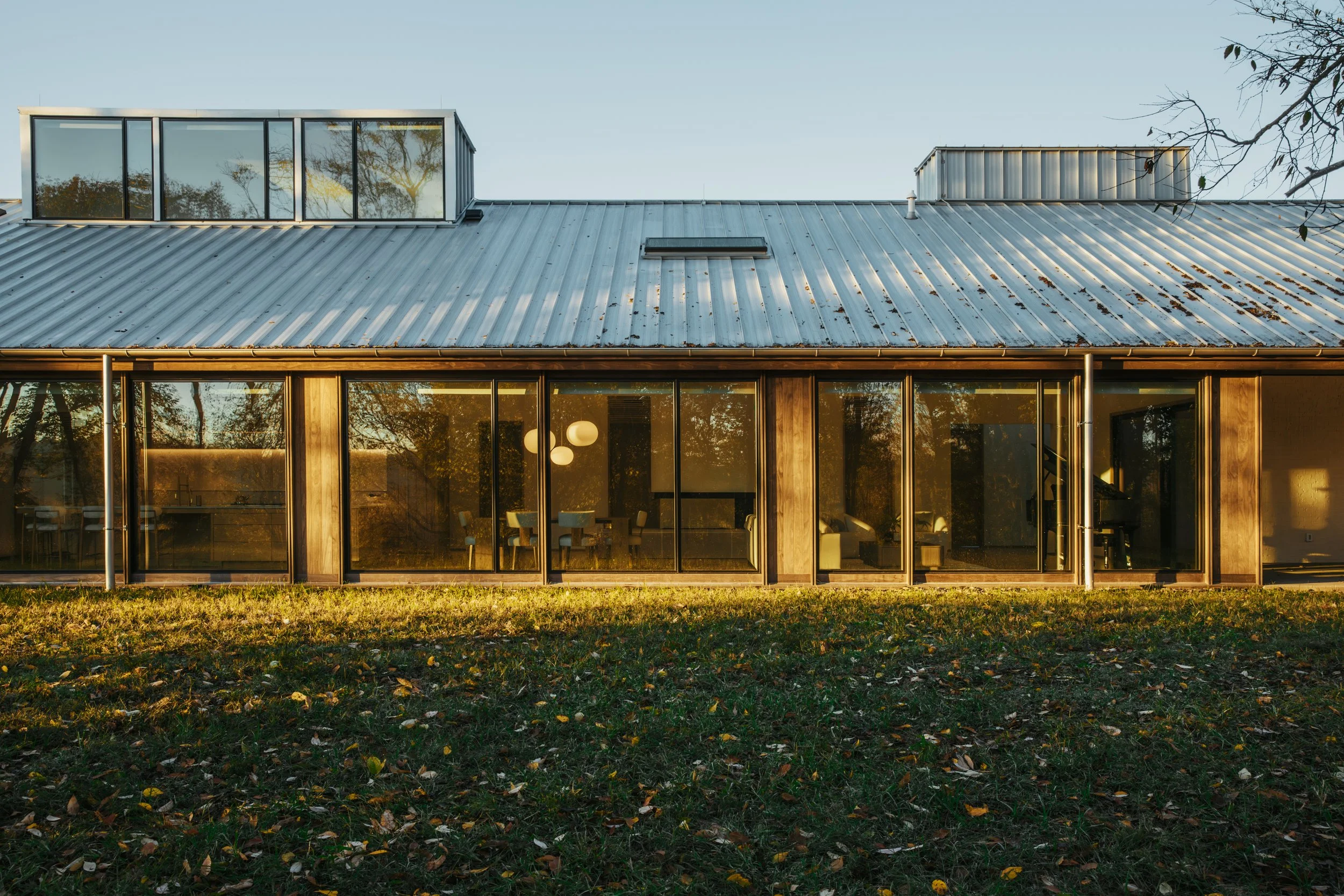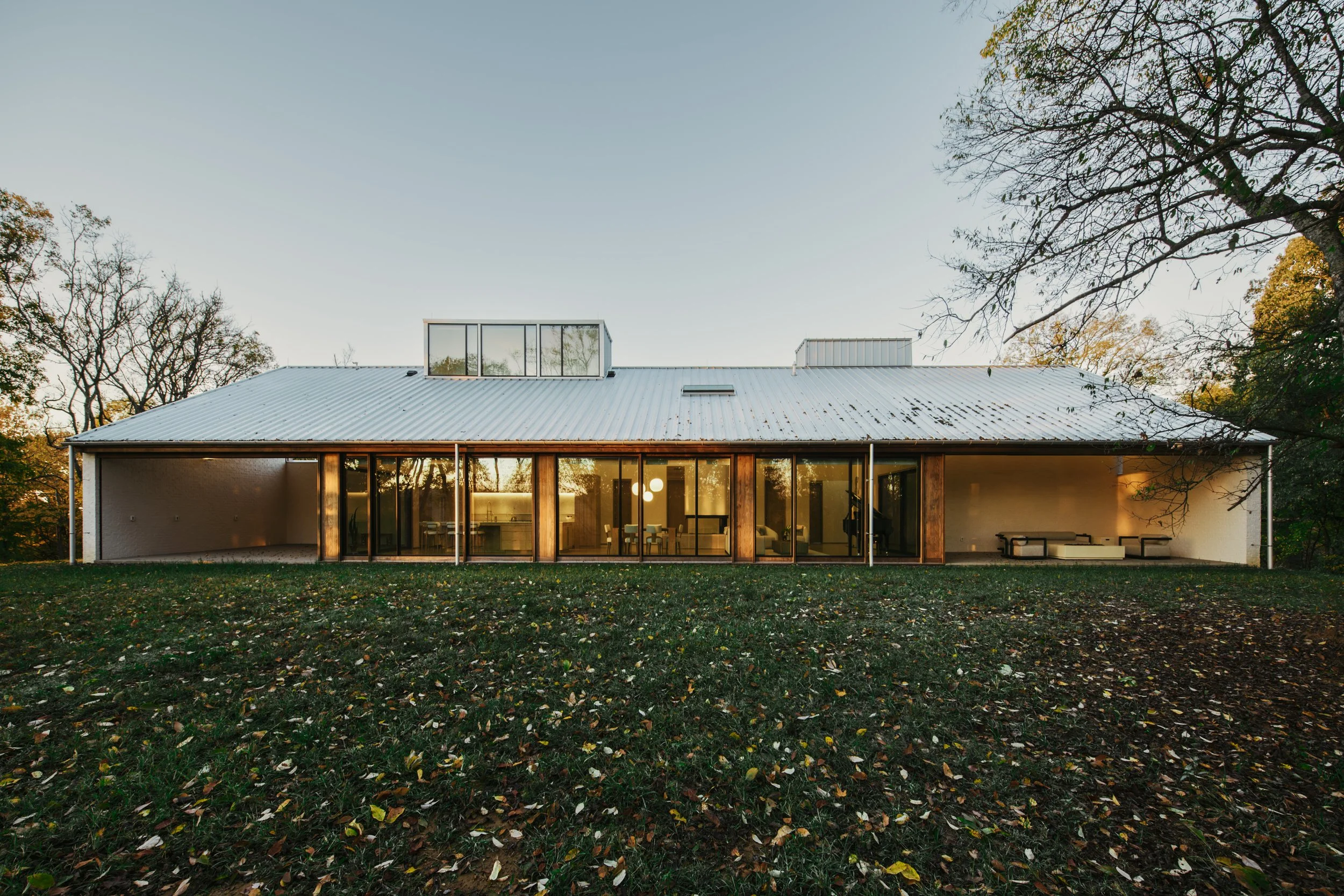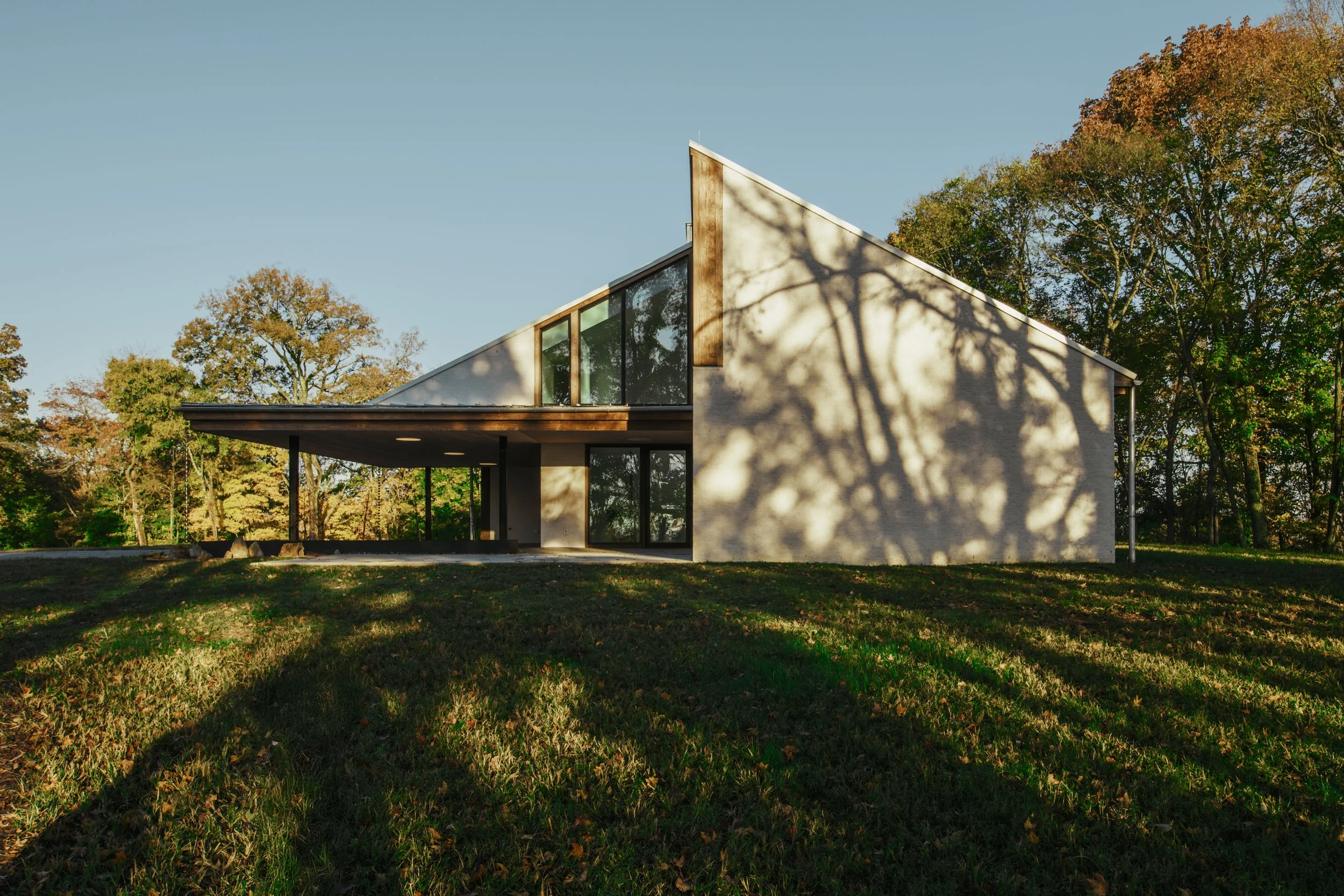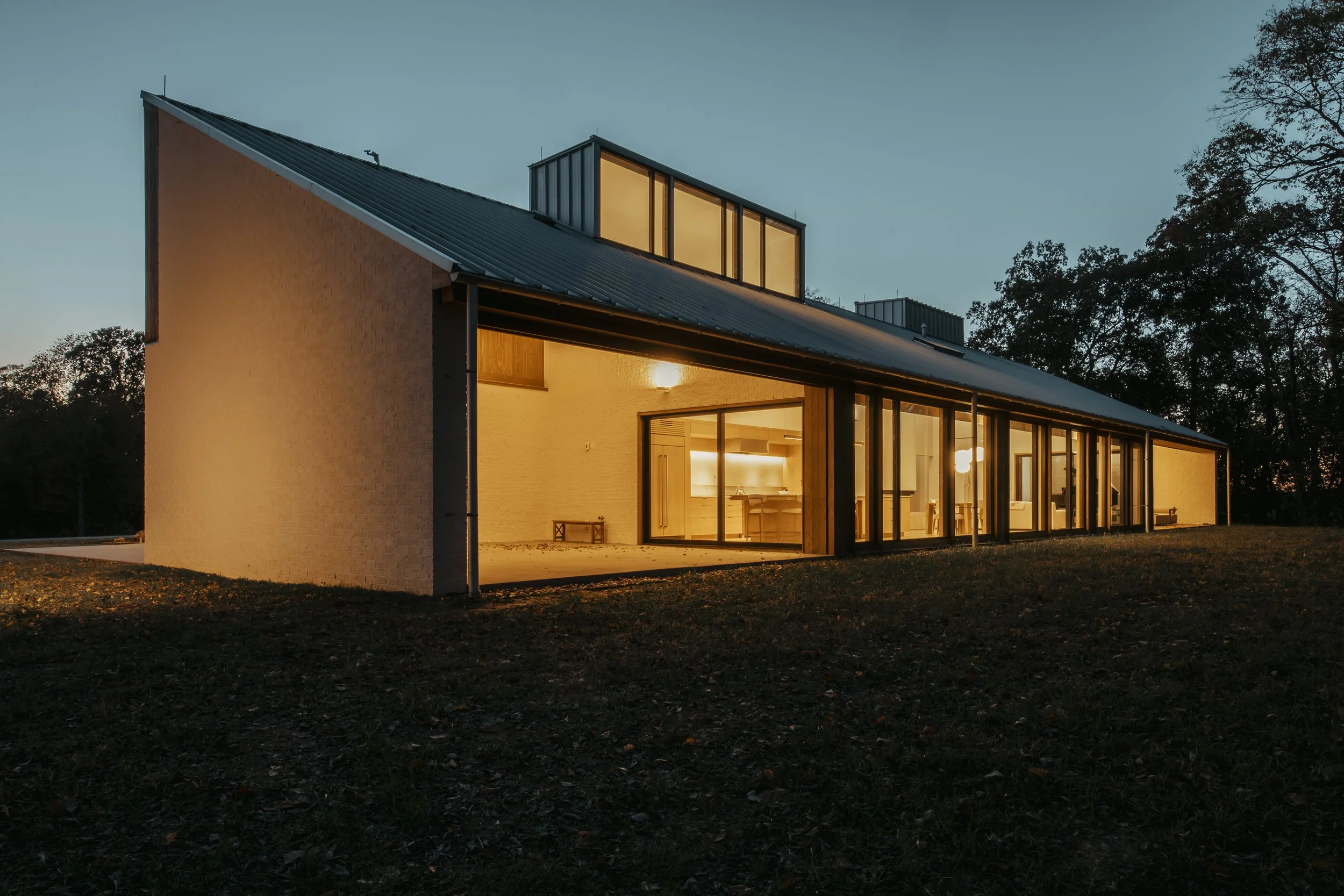 A family with two children who ride horses and raise chickens, requested a glass house overlooking a pastoral landscape. One partner requested a home rooted to its site, with long, uninterrupted views of the land and the native wildlife. The other asked that the design integrate key principles of Feng Shui, beginning with the home’s orientation and extending to the layout of essential rooms. Both desired interiors that remained visually and spatially connected to the outdoors through generous glazing. Our primary goal was to create a modern home that felt like an extension of the site, open to views and daylight, while utilizing the orientation and layout as defined by the Kua Number Calculator. We wanted the interior to quietly glow throughout the day, with shifting light and shadows that changed season by season, reinforcing a circadian sense of calm. A second goal was to blur distinctions between the rooms; living room, dining room, kitchen, and hallway. We wanted the entire home, especially the kitchen, to feel like a continuous field of overlapping activities, extending to the exterior. Our biggest challenge was our limited initial understanding of Feng Shui—specifically the Kua 1–9 number system and the Geomantic Chart. Using the family’s birth dates and projected move-in date (which would be during the Period 8 cycle), we established the orientation of the primary façade, known as the “Facing Palace,” where the home’s energy originates. We generated the Kua numbers and applied them to a nine-square grid over a generic floor plan to determine the auspicious and inauspicious zones of the house. The layout, anchored by four covered, corner porches, was generated using this overlay. The main entry, the bedrooms, and especially the kitchen—had to be correctly placed before the rest of the plan could be developed. Ensuring that the kitchen occupied the most favorable portion of the house while still aligning with views and circulation took several design iterations. It was a process of balancing Feng Shui directives with client, site and architectural intent. Through the process we noted how primary tenants of Feng Shui correlated well with passive energy strategies of orientation and natural ventilation. Curving surfaces were deployed to soften and stretch light providing calm fluid surfaces for energy to flow through the house. This project was ultimately a search for simplicity. Nearly every design decision, from appliance selection to windows and trim, grew from the clients’ desire for clarity. Its simplicity stems from the careful coordination between cultural principles, site conditions, and the practical realities of living. The home transitioned this year from a Period 8 House to a Period 9 house modifying the interior’s energy for the next 20 years. Features such as a fountain facing the North East are being added to address these shifts into a new Period. We took away from this that Feng Shui is not a static strategy but rather, one that changes and adjusts with time just as homes naturally do.