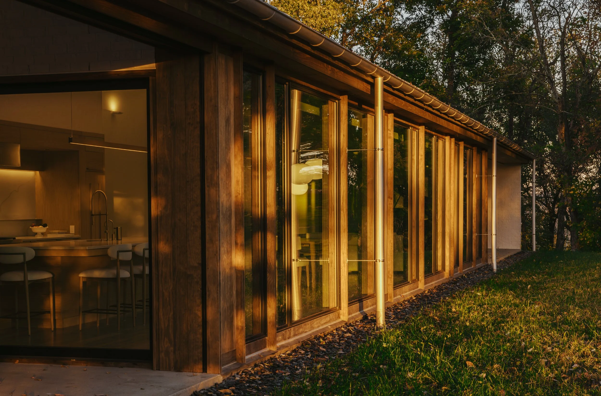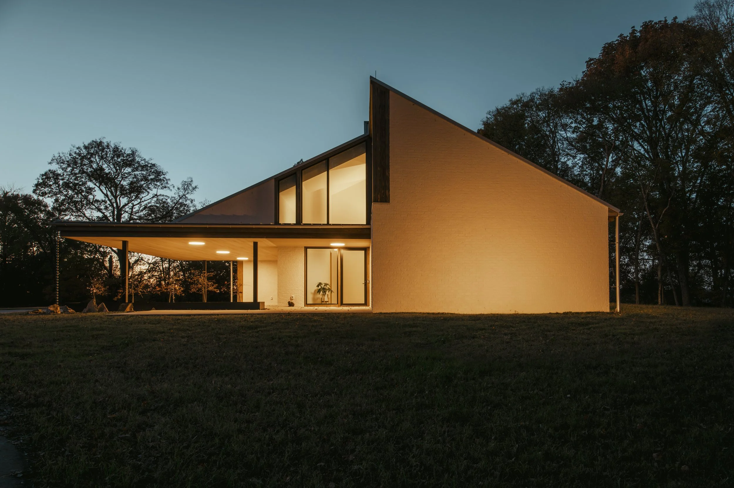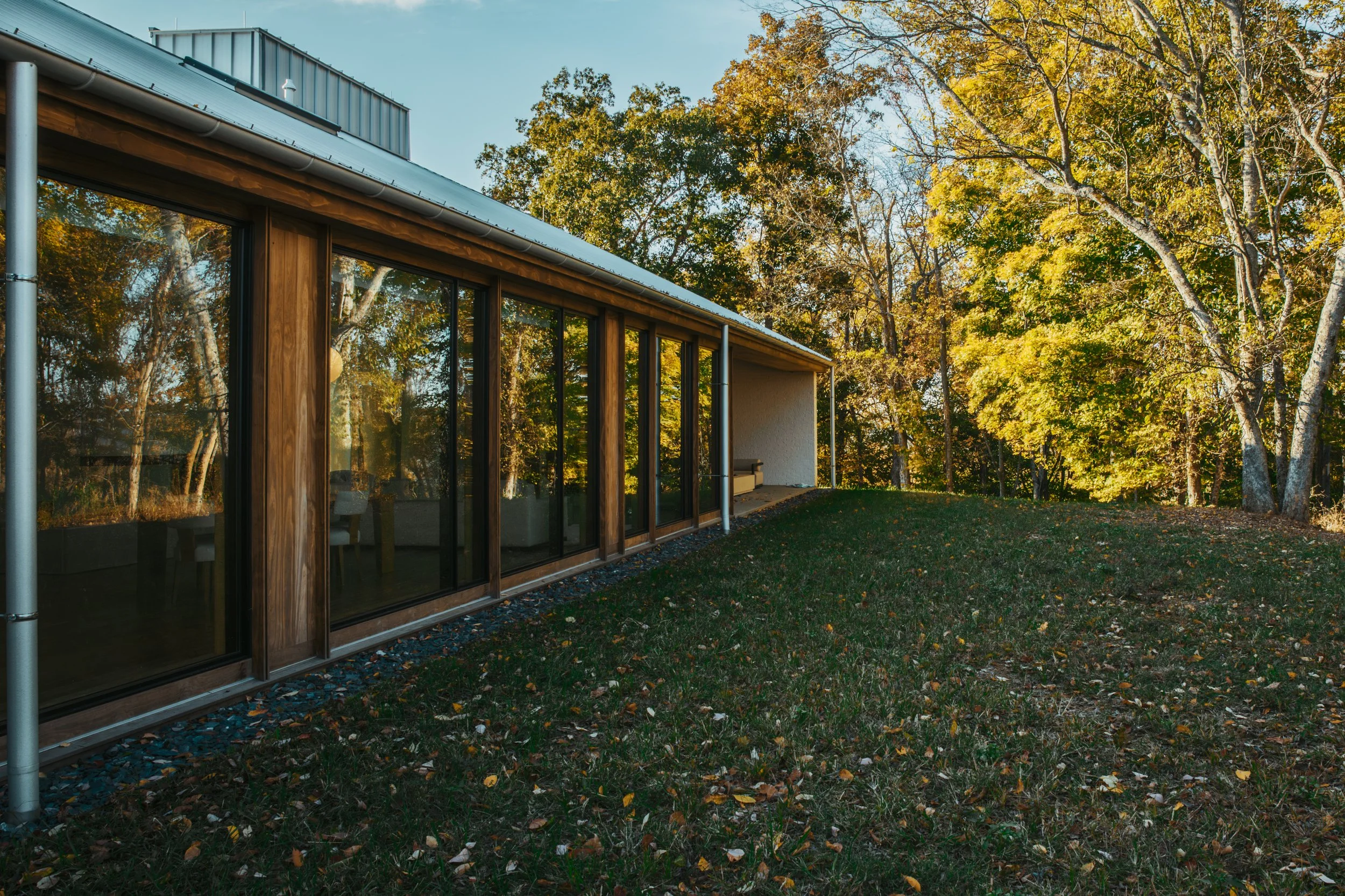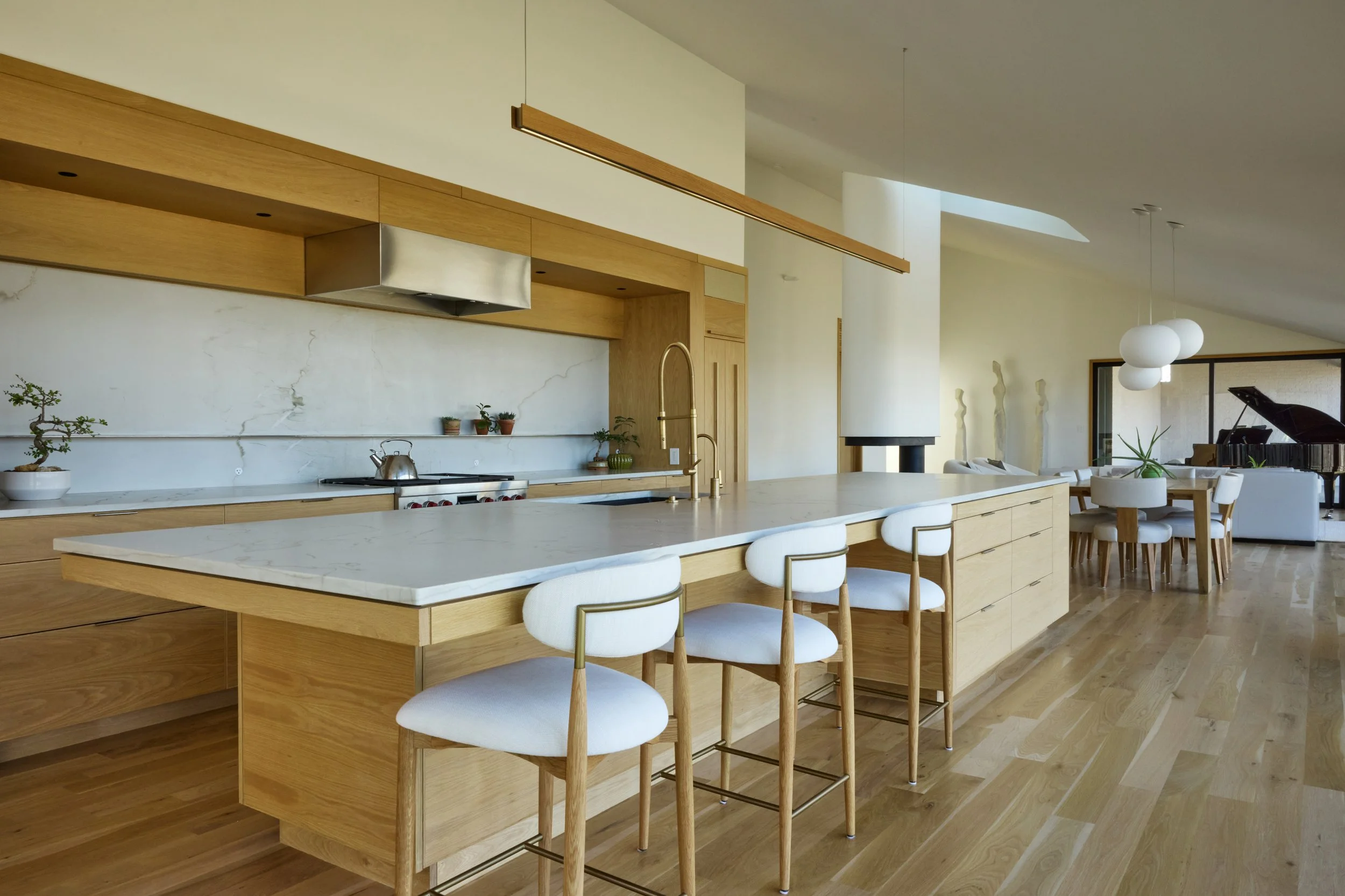 A family with two children who ride horses and raise chickens, requested a glass house overlooking a pastoral landscape. One partner requested a home rooted to its site, with long, uninterrupted views of the land and the native wildlife. The other asked that the design integrate key principles of Feng Shui, beginning with the home’s orientation and extending to the layout of essential rooms. Both desired interiors that remained visually and spatially connected to the outdoors through generous glazing. Our primary goal was to create a modern home that felt like an extension of the site, open to views and daylight, while utilizing the orientation and layout as defined by the Kua Number Calculator. We wanted the interior to quietly glow throughout the day, with shifting light and shadows that changed season by season, reinforcing a circadian sense of calm. A second goal was to blur distinctions between the rooms; living room, dining room, kitchen, and hallway. We wanted the entire home, especially the kitchen, to feel like a continuous field of overlapping activities, extending to the exterior. Our biggest challenge was our limited initial understanding of Feng Shui—specifically the Kua 1–9 number system and the Geomantic Chart. Using the family’s birth dates and projected move-in date (which would be during the Period 8 cycle), we established the orientation of the primary façade, known as the “Facing Palace,” where the home’s energy originates. We generated the Kua numbers and applied them to a nine-square grid over a generic floor plan to determine the auspicious and inauspicious zones of the house. The layout, anchored by four covered, corner porches, was generated using this overlay. The main entry, the bedrooms, and especially the kitchen—had to be correctly placed before the rest of the plan could be developed. Ensuring that the kitchen occupied the most favorable portion of the house while still aligning with views and circulation took several design iterations. It was a process of balancing Feng Shui directives with client, site and architectural intent. Through the process we noted how primary tenants of Feng Shui correlated well with passive energy strategies of orientation and natural ventilation. Curving surfaces were deployed to soften and stretch light providing calm fluid surfaces for energy to flow through the house. This project was ultimately a search for simplicity. Nearly every design decision, from appliance selection to windows and trim, grew from the clients’ desire for clarity. Its simplicity stems from the careful coordination between cultural principles, site conditions, and the practical realities of living. The home transitioned this year from a Period 8 House to a Period 9 house modifying the interior’s energy for the next 20 years. Features such as a fountain facing the North East are being added to address these shifts into a new Period. We took away from this that Feng Shui is not a static strategy but rather, one that changes and adjusts with time just as homes naturally do.