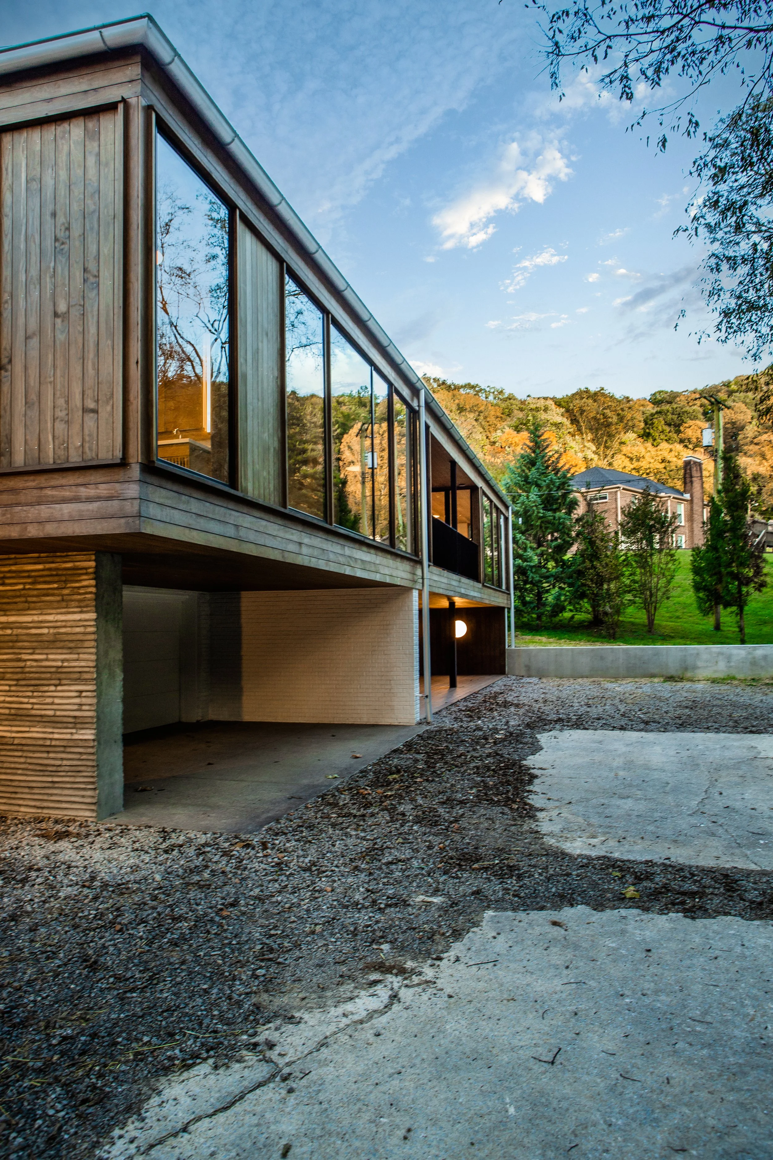 Unassuming ranch on the front, unabashed modern pavilion on the back.